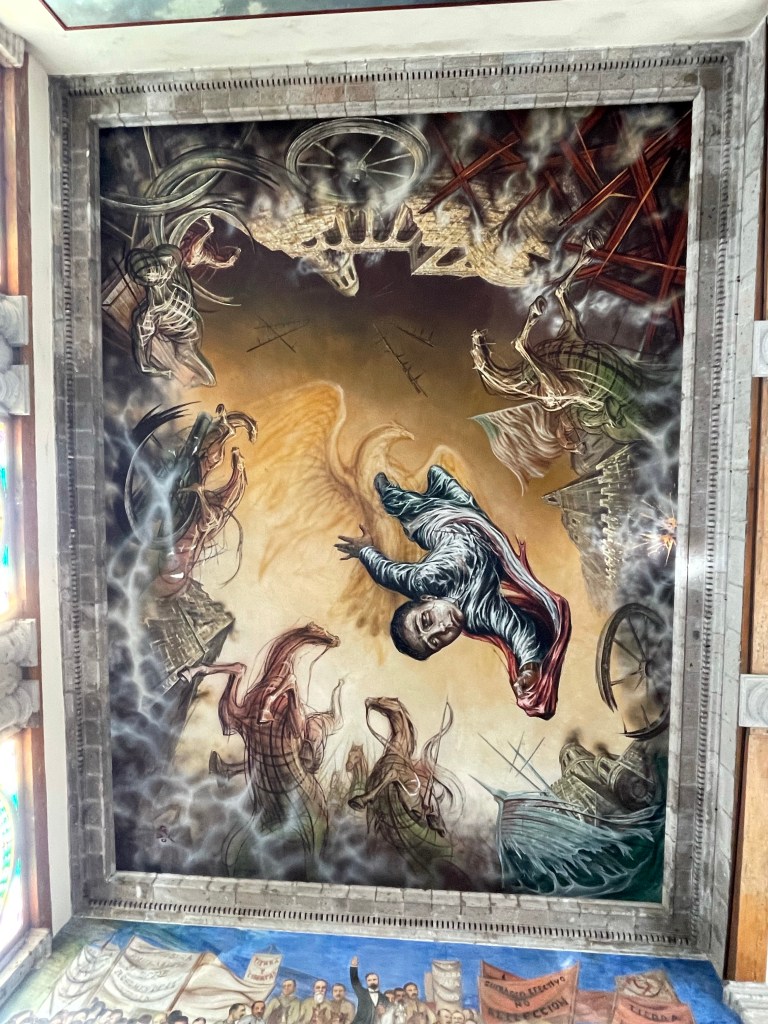 The first plot to assassinate Trotsky was led by David Siqueiros, the guy painted this mural. He and Rivera didn’t really get along after that.