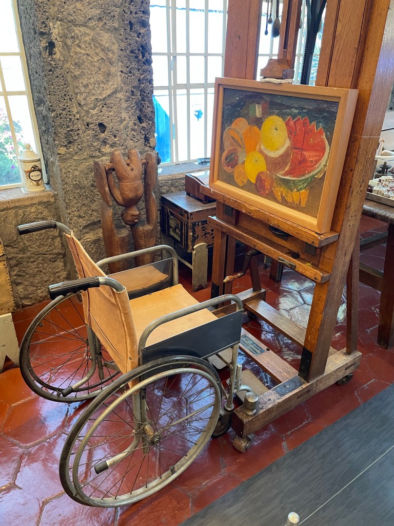 Frida struggled with chronic paint for the entirety of her life following a bus accident when she was eighteen. Many of her easels were specially modified so that she could paint from a wheelchair or while in bed.