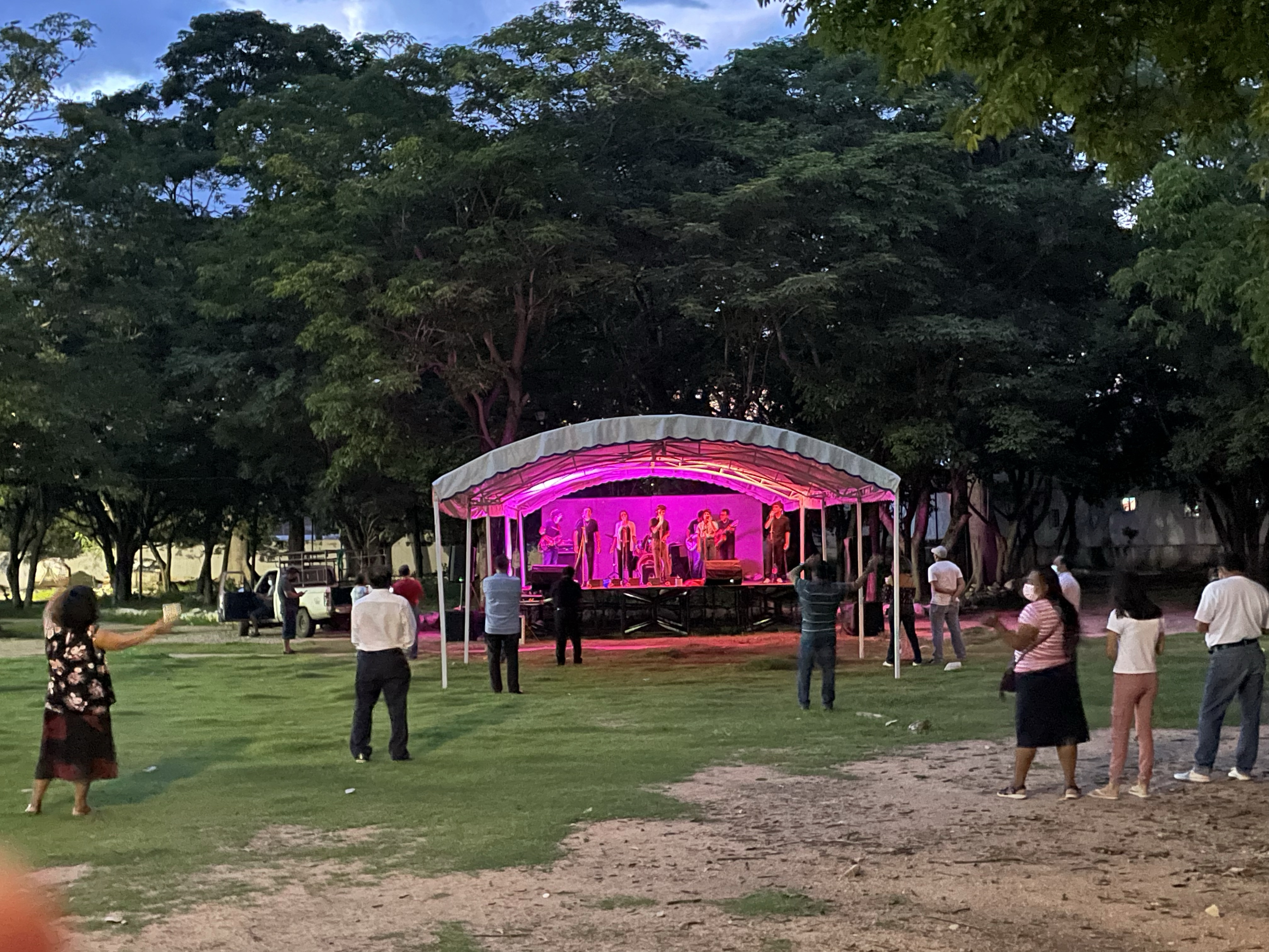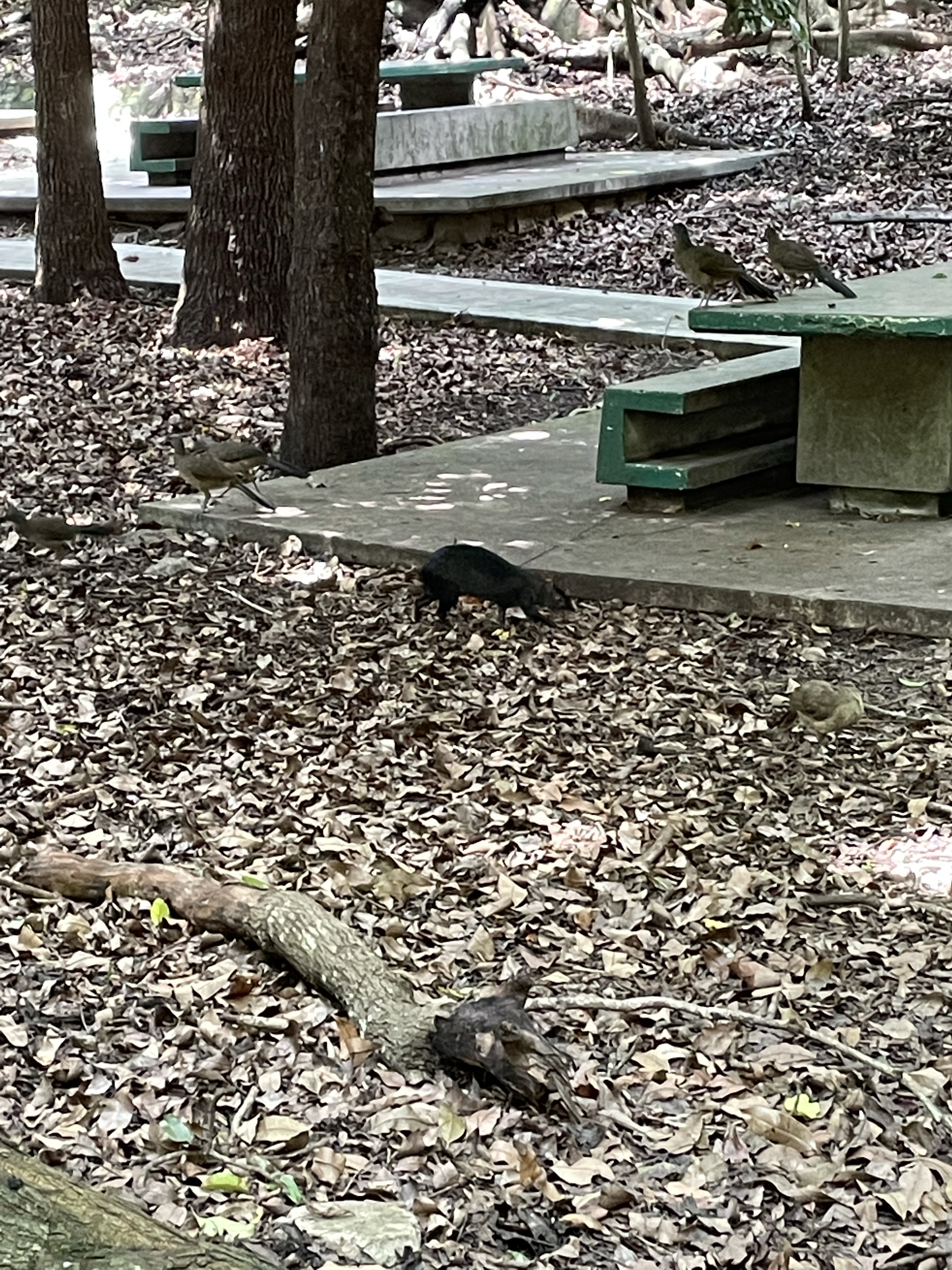 Instead of regular, old, seated class, today we had a walking class and visited the free-to-the-public sports center on the edge of town. It was super nice; there were a bunch of soccer fields, a basketball court, some volleyball courts, exercise machines, and a big track to run around. The whole area was secluded by some big trees where I spotted some parrots and an iguana (maybe two iguanas, there was some dispute over whether the second was a small iguana or a regular-sized squirrel). It was right next to the river, but I was told it’s not a good idea to go swimming during this part of the year because the current is really strong and also there are lots of crocodiles, both of which are pretty good reasons. After class I returned to the school and tried to print some documents, but failed because someone had moved the modem.